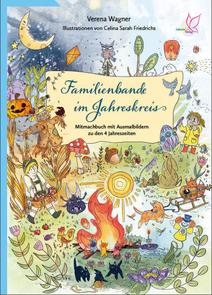 Wenn ihr ein paar Inspirationen braucht, was man mit Kindern im Wald so spielen, unternehmen und bauen kann, habe ich das richtige für Euch: In meinem Buch „Familienbande im Jahreskreis“ finden sich zauberhafte Spielideen mit Holz, Stecken, Blumen, Kräutern, Steinen und anderen Naturmaterialien. Dieses Buch hilft Eltern mit praktischen Tipps, die Natur in den Familienalltag zu holen. Hier erfährst du mehr über das Mitmachbuch Familienbande im Jahreskreis.