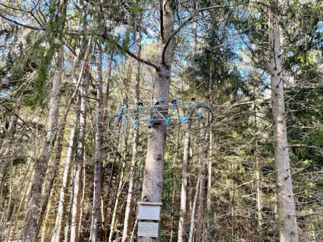 Wie so oft fühlt sich Rückweg schneller an, obwohl hier ja ein anderer Weg gewählt wurde um die drei Runden zu schließen. So führt uns der Abstieg über die wirklich coole Wolfsschlucht, an Zigeunerloch und Waldandacht vorbei wieder zurück zu unserem Start nach Wöllersdorf. Erst hier am Rückweg haben wir beim Spielplatz den Viersitzer im Baum entdeckt.