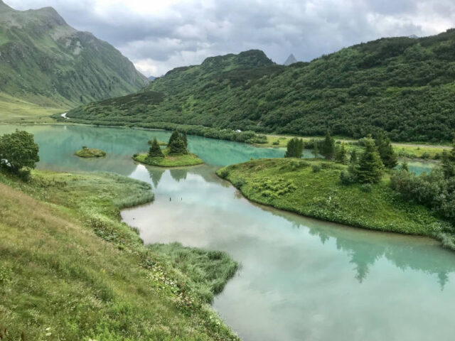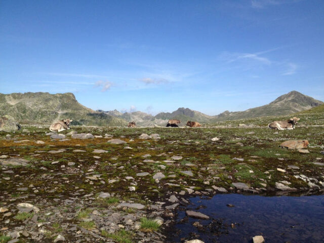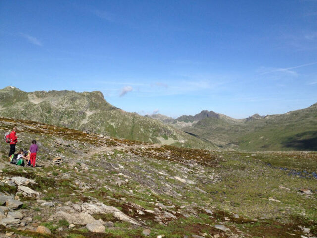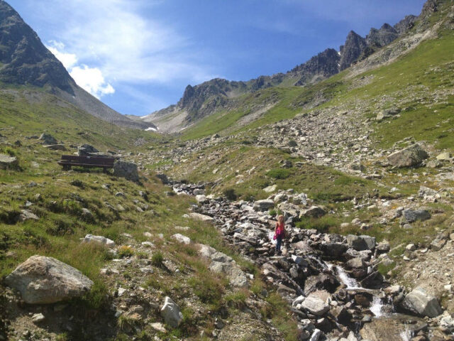 Der Ausgangspunkt unserer Wanderung war Galtür. Von dort ging es erst über Wiesen hinauf zum Zeinisjoch, das auf 2000 Höhenmetern liegt. Wer abkürzen möchte, kann die Tour auch hier starten, da das Zeinisjoch gut mit dem Bus zu erreichen ist. Von dort ging es über Stege und an einem See vorbei zur Varbella-Alpe und dann weiter zur Heilbronner Hütte auf 2320 m. Die Hütte ist wirklich schön und es gibt Seen in der Nähe, sodass wir dort wieder einen Tag gerastet haben und die Gegend erkundeten. Das Aufwachen am Berg ist etwas ganz Besonderes. Da ist man gefühlt so weit weg von allem und kann echt entschleunigen und zur Ruhe kommen. Den Kindern hat der Klang der Kuhglocken gefallen und obwohl das Wasser sehr kalt war, haben sie in den Seen gebadet. Immer wieder waren Murmeltiere zu hören und manche waren auch so nahe, dass wir sie gut sehen konnten.