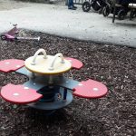Leider gibt’s beim Spielplatz kein WC. Rund um den Kleinkinderspielbereich gibt es Kastanienbäume. Für passionierte SammlerInnen, wie meine ältere Tochter, ein echtes Paradies im Herbst.