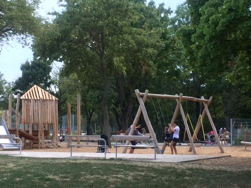 Seit heuer erstrahlt der Spielplatz auf der Lorettowiese in ganz neuem Glanz, denn er ist umgebaut und erweitert worden. Es gibt einen eigenen, abgetrennten Kleinkinderbereich und dann den großen Spiel-Bereich für die Größeren.