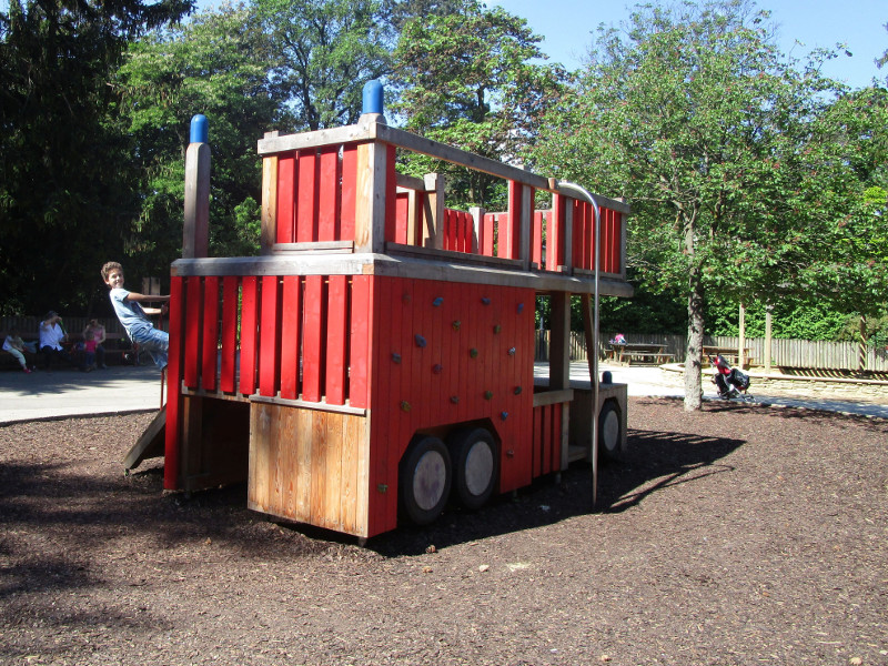 Als meine Kinder noch klein waren, hat sie besonders die riesige Sandkiste fasziniert. Ein Lieblingsplatz für viele Kinder ist das Feuerwehrauto aus Holz. Die Kinder können auf dem Auto herumklettern und haben von der Plattform einen tollen Überblick. Sehr beliebt ist auch die lange Rutsche, die in den Hang gebaut ist.